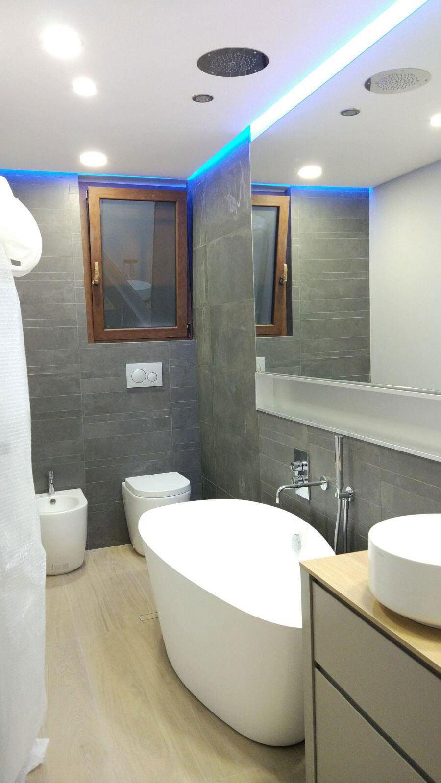 Supply: Gessi Via Tortona taps, Bossini ceiling mounted shower head, Abk Docks grey coating, Compab furniture